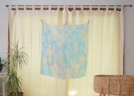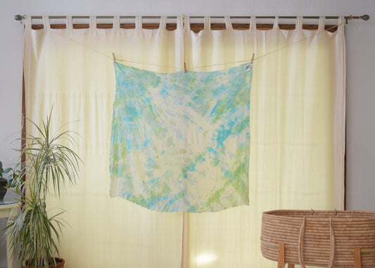 a noon is a swaddle sized receiving blanket, crafted from raw fabric, hand dyed and sewn. This truly unique bamboo fabric weave is weighty yet light, sturdy yet soft, warm yet breathable to ensure your investment in a noon is enjoyed from infancy and beyond.